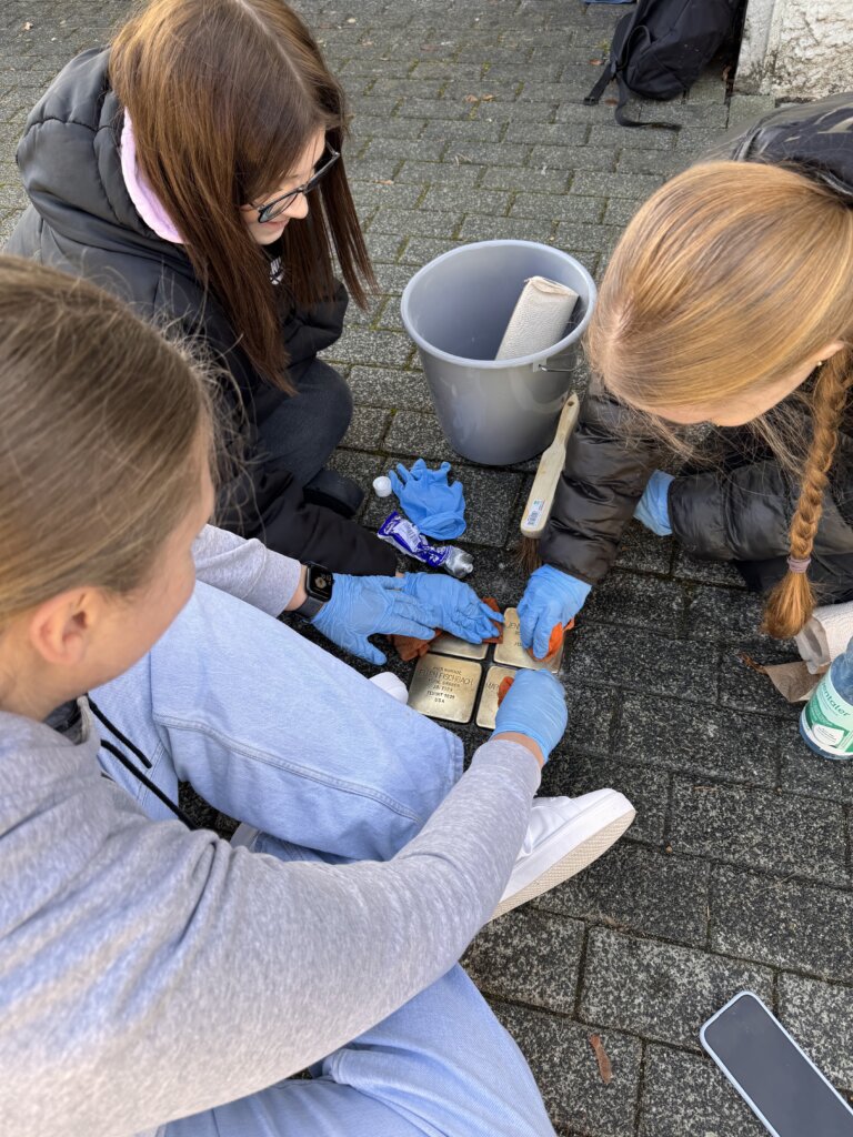 Wie schon im vergangenen Jahr wurden die Steine im Rahmen unseres Siegels „Schule ohne Rassismus – Schule mit Courage“ sorgfältig gereinigt. Ein starkes Zeichen gegen das Vergessen – und ein großes Dankeschön an euch, liebe Schülerinnen und Schüler, für euer Engagement!